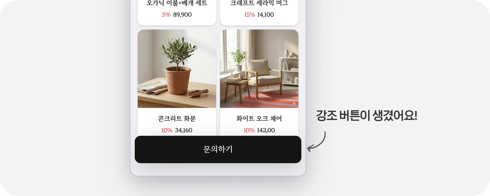 눈에 띄는 버튼 : 버튼이 화면 하단에 고정됩니다. 방문자가 페이지 어디를 보고 있더라도 손가락이 가장 닿기 쉬운 곳에 위치하여 클릭을 유도해요.