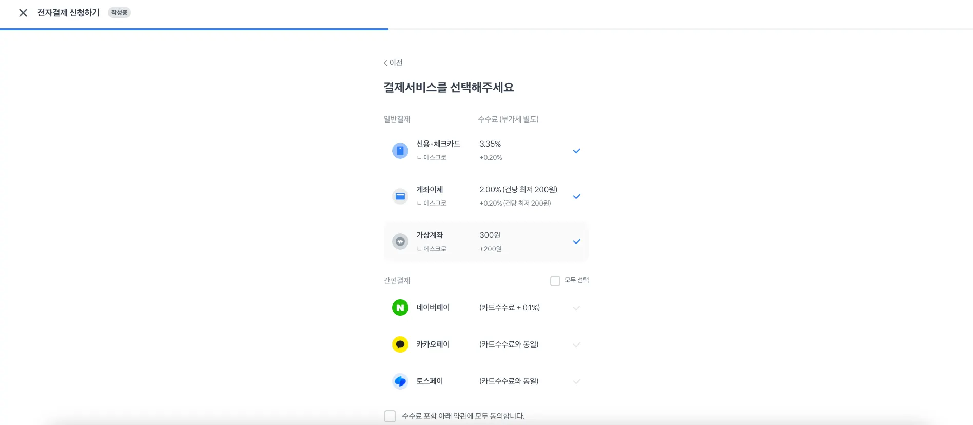 사업의 특성에 따라 필요한 결제 서비스를 선택하세요.
