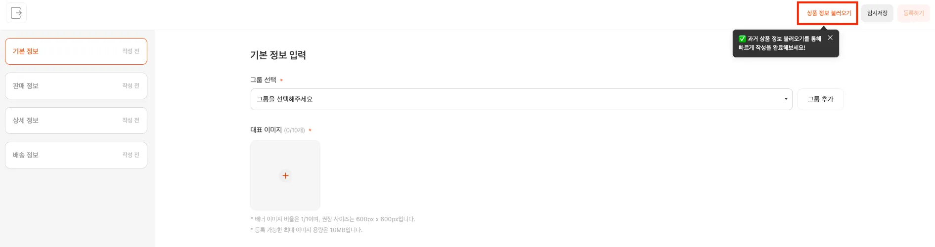 쉽고 빠르게 상품 등록을 시작하려면, 기존 정보를 불러오는 기능을 활용해 보세요.