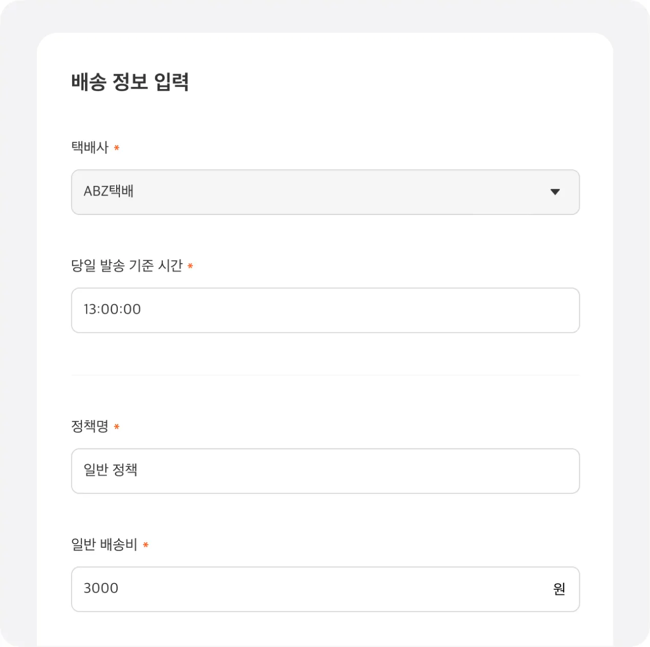정책명: 배송 관련 정책의 이름을 입력해 주세요!