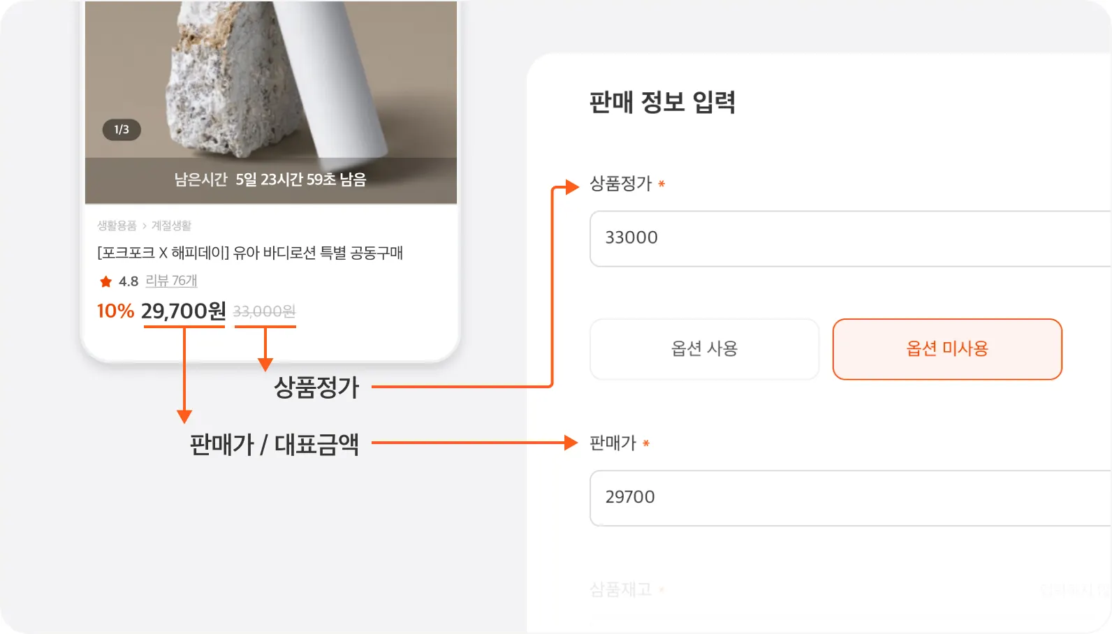 판매가: 실제로 고객이 구매할 가격을 입력해주세요!