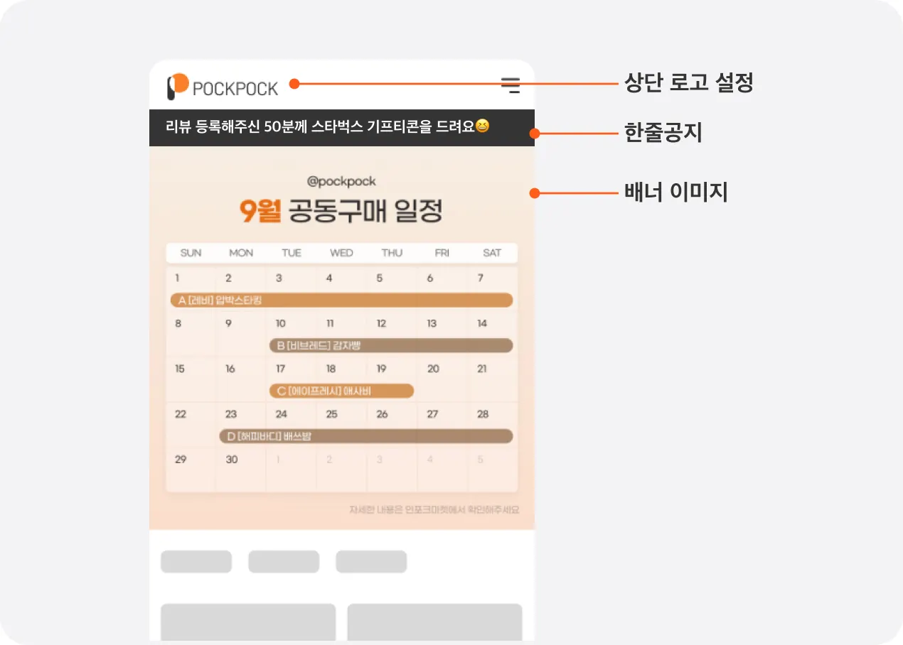 캘린더 이미지로 판매 일정을 쉽게 알릴 수 있어요.