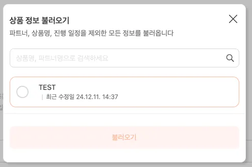 기존에 저장된 상품 리스트 중에서 원하는 상품을 선택하면,모든 기본 정보가 자동으로 입력됩니다.