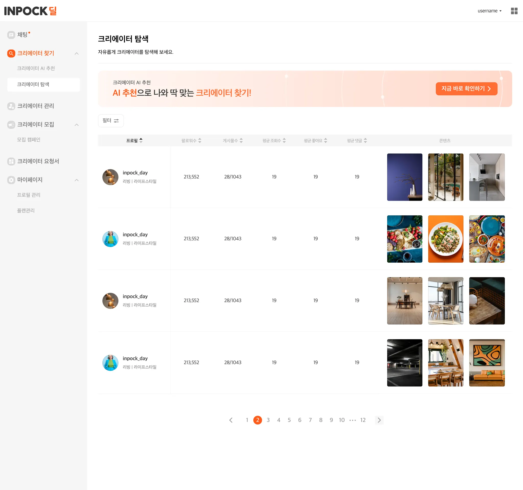 브랜드는 이 리스트에서 관심 크리에이터를 골라 제안서를 보낼 수 있습니다.