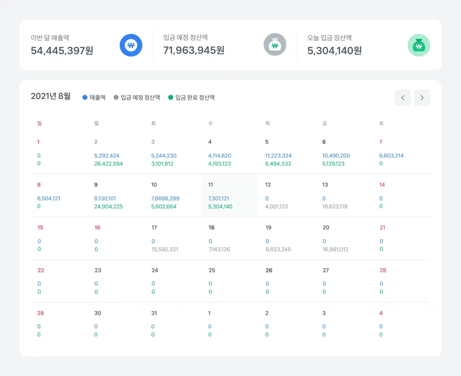 고객님께서 내 상점에서 결제한 내역은 다음과 같은 과정을 거쳐 정산됩니다: