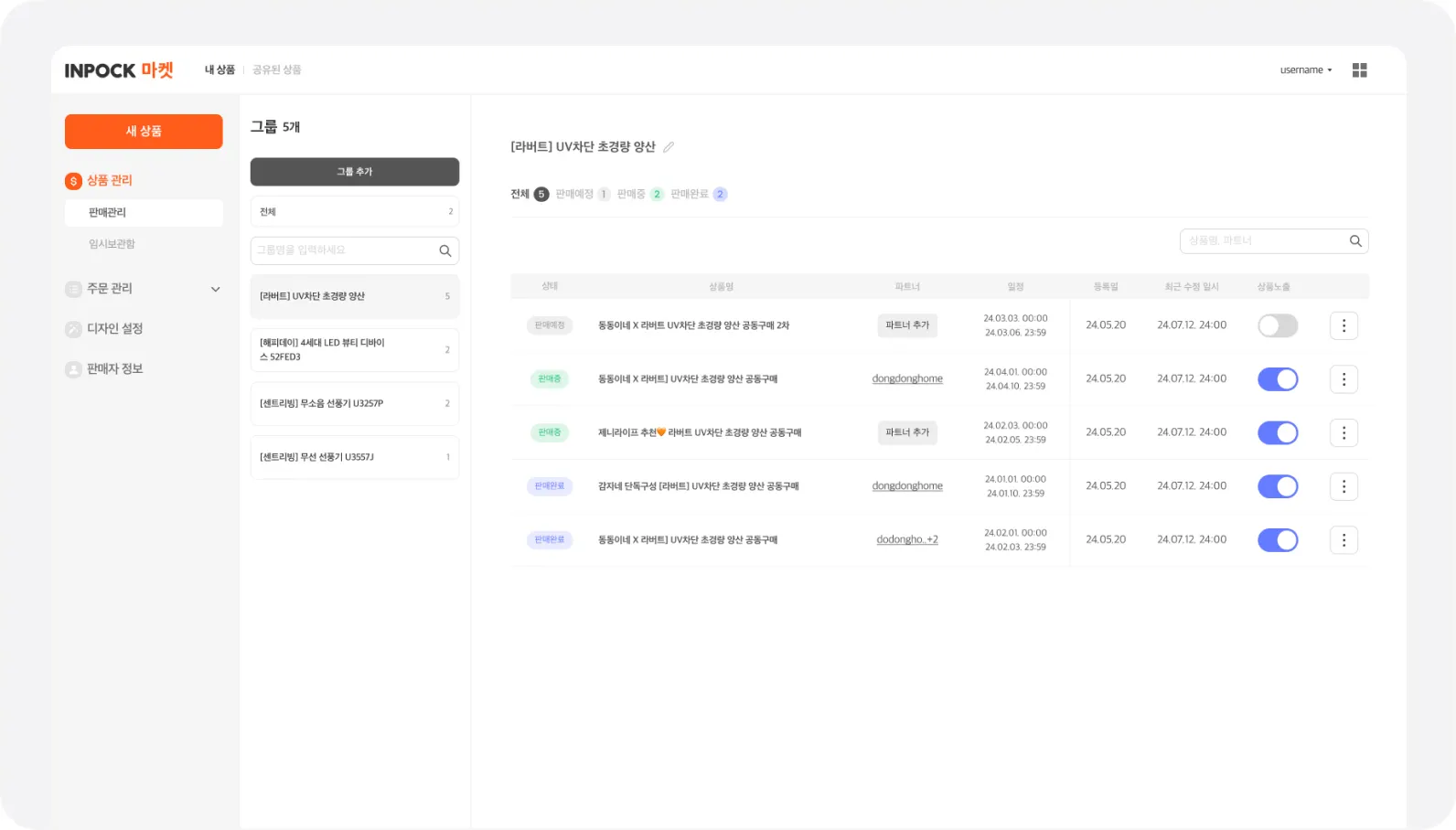 상품의 라인업별로 그룹을 만들면 관리가 편해져요!