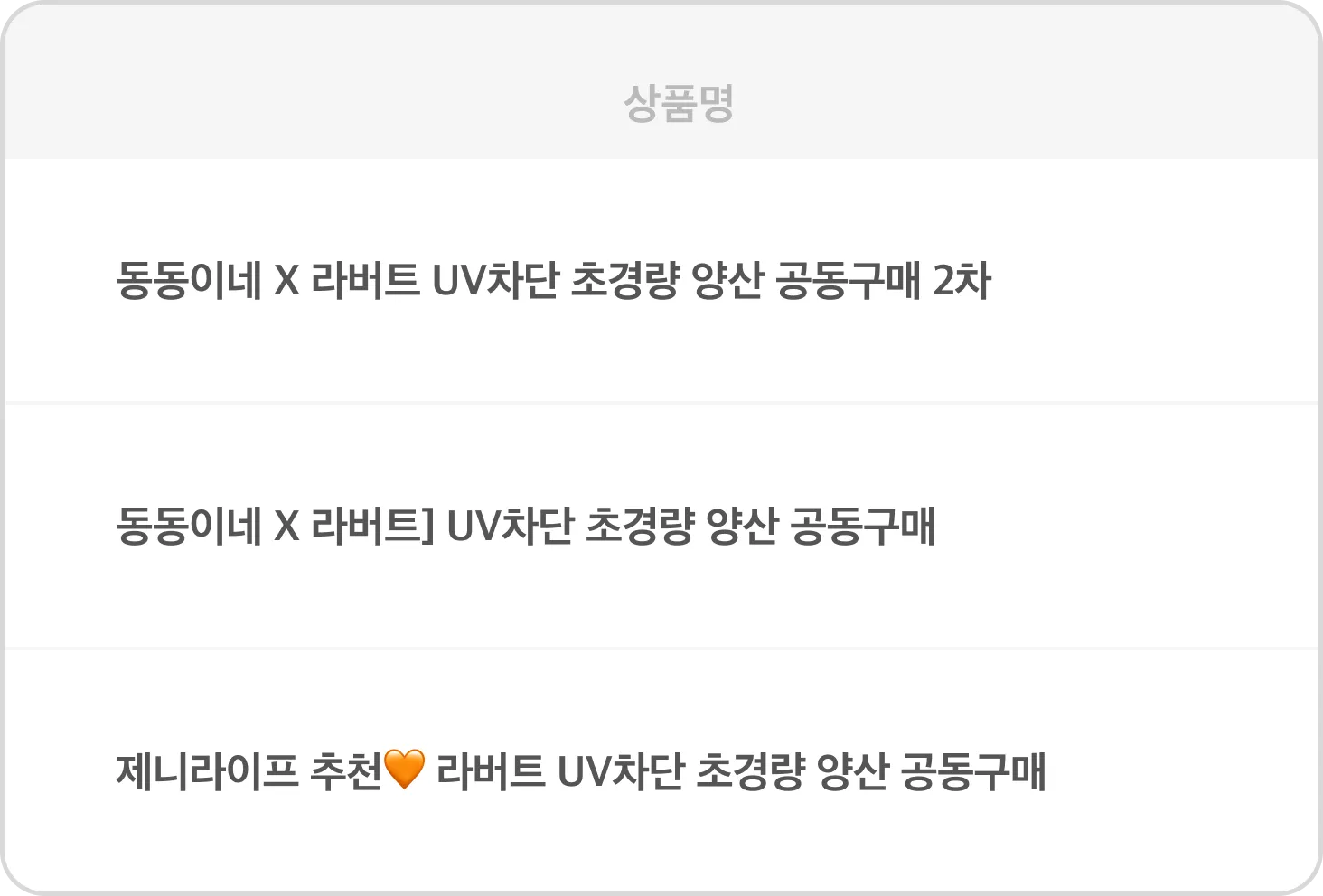 상품명: 고객들에게 노출되어 판매되는 상품 이름이에요!
